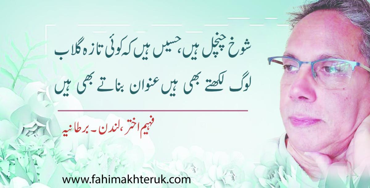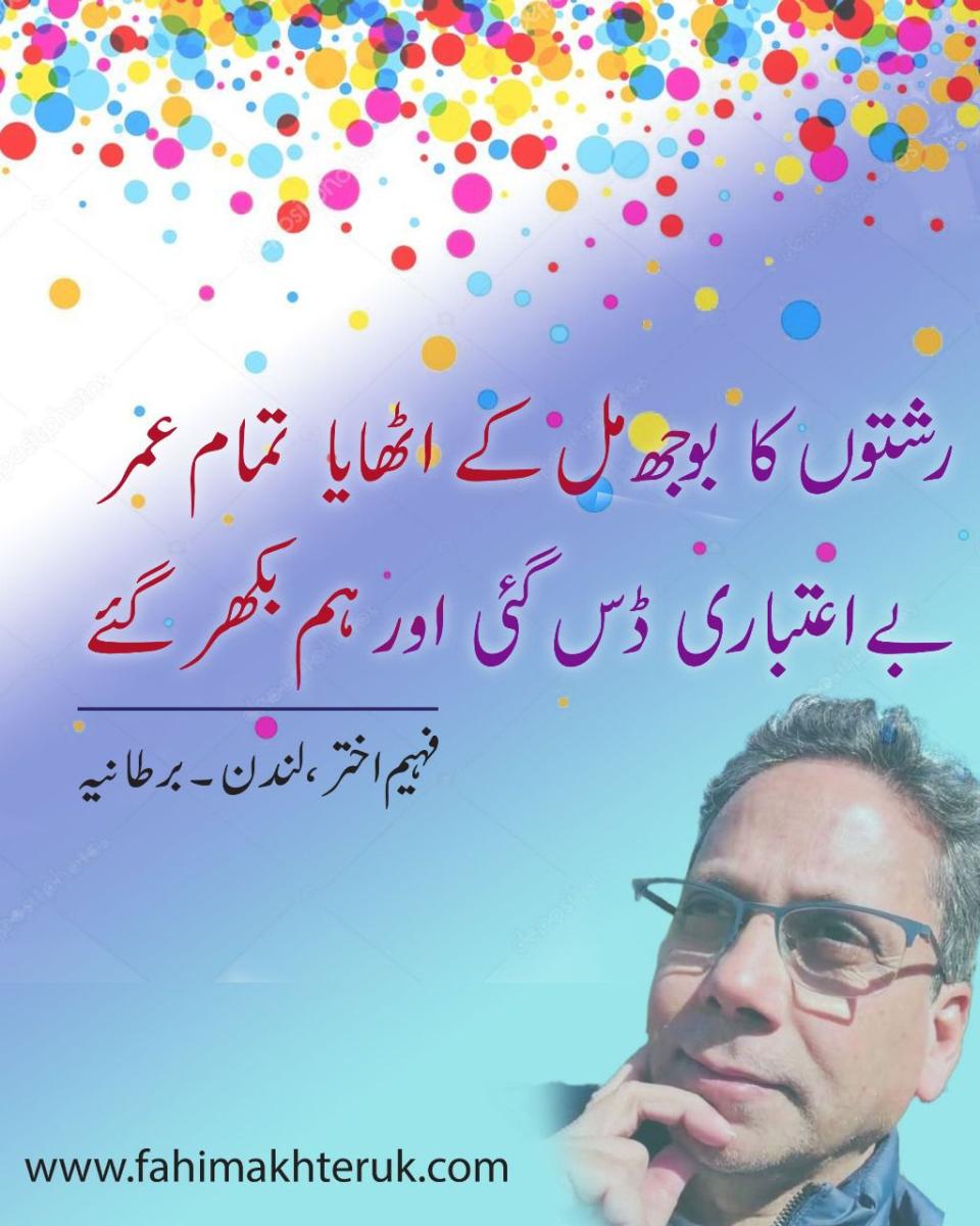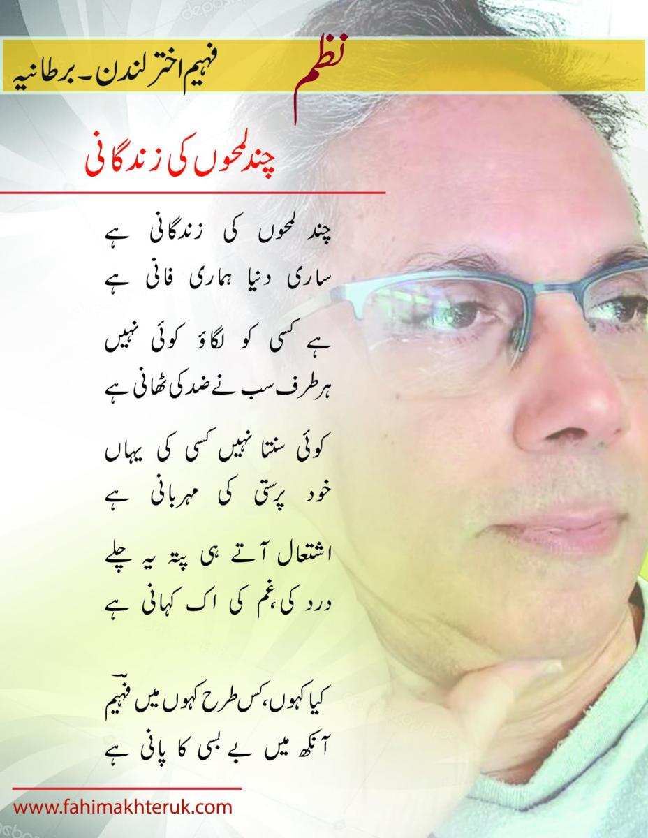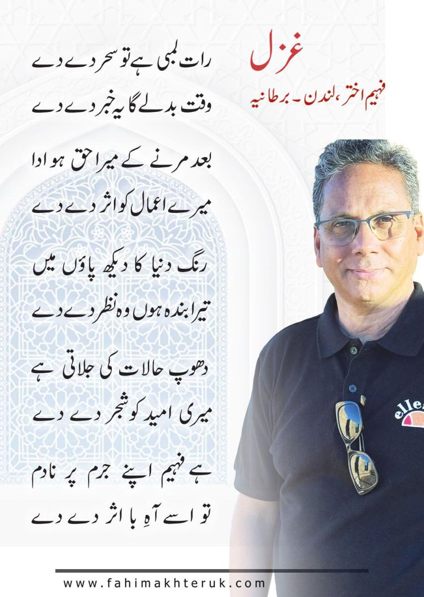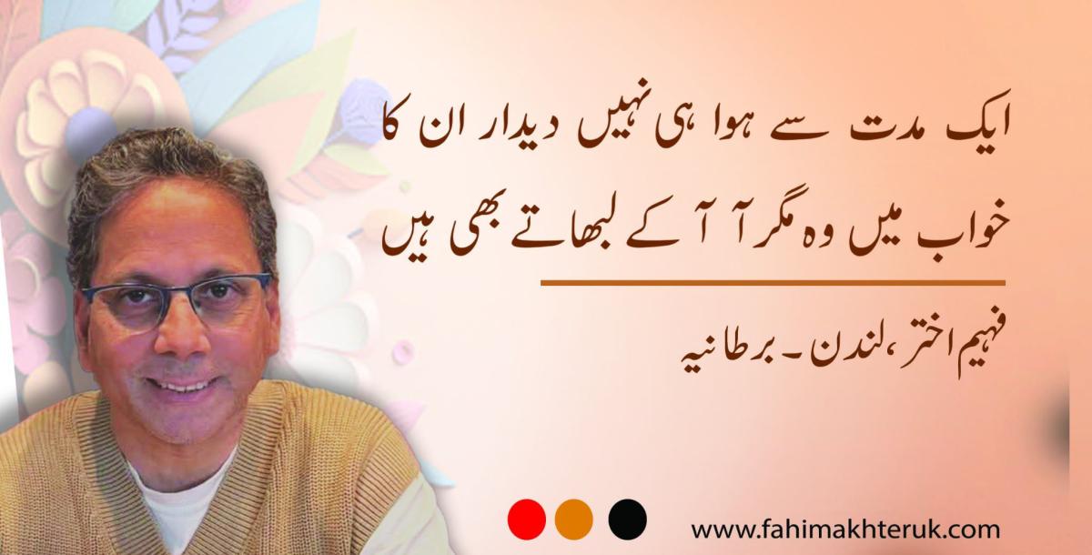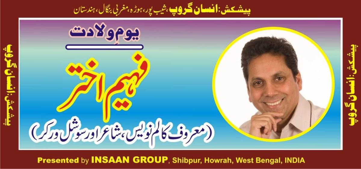 Fahim Akhter is a poet, short story writer and a columnist in Urdu. By Profession he is a registered Social Worker in England. He was born in 1966 in Calcutta. He has 9 brothers and sisters. He married to Huma Syed an IT professional and he has a daughter Zara Fahim. His father Sufi Jamil Akhter was a Sufi follower. He was graduated from Maulana Azad College Calcutta in 1988 and completed M.A in 1991 from University of Calcutta. In 2005 London Borough of Merton sponsored Fahim Akhter to complete the Diploma in Social Work training to become a qualified Social Worker.