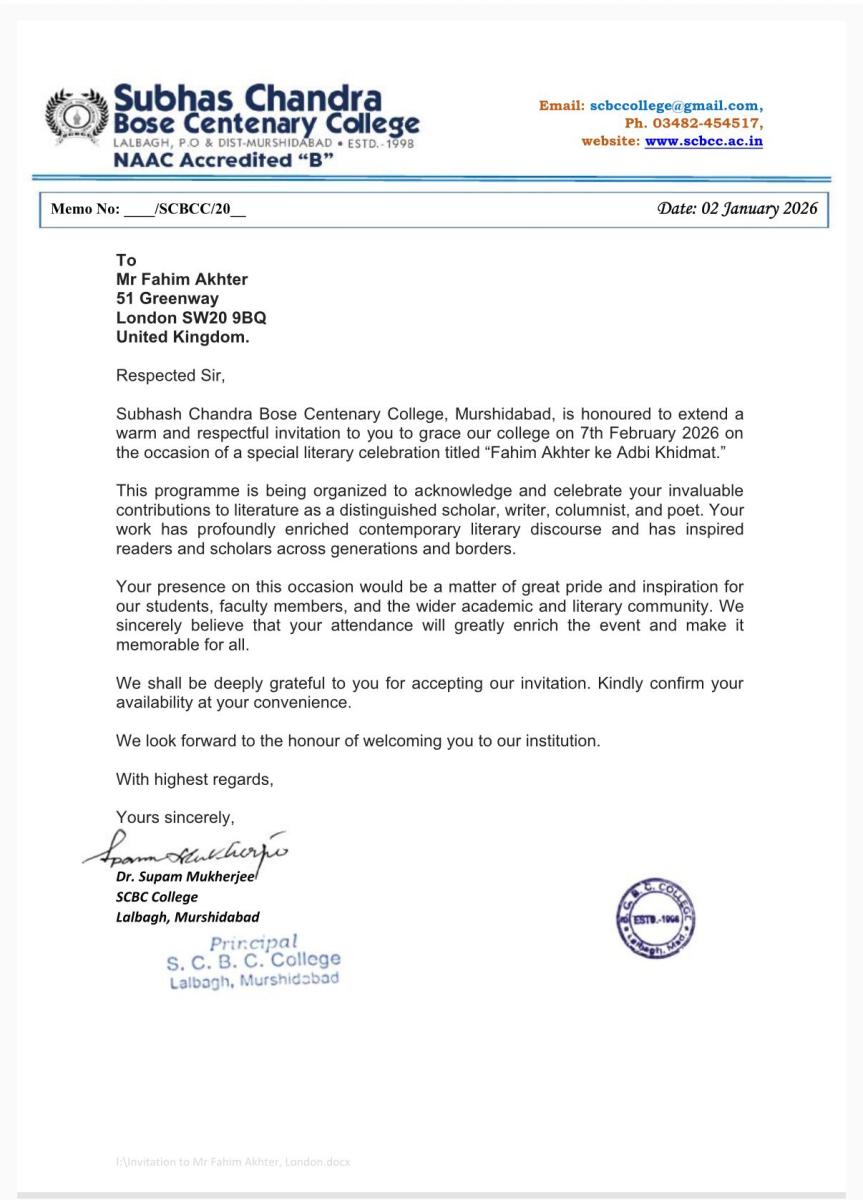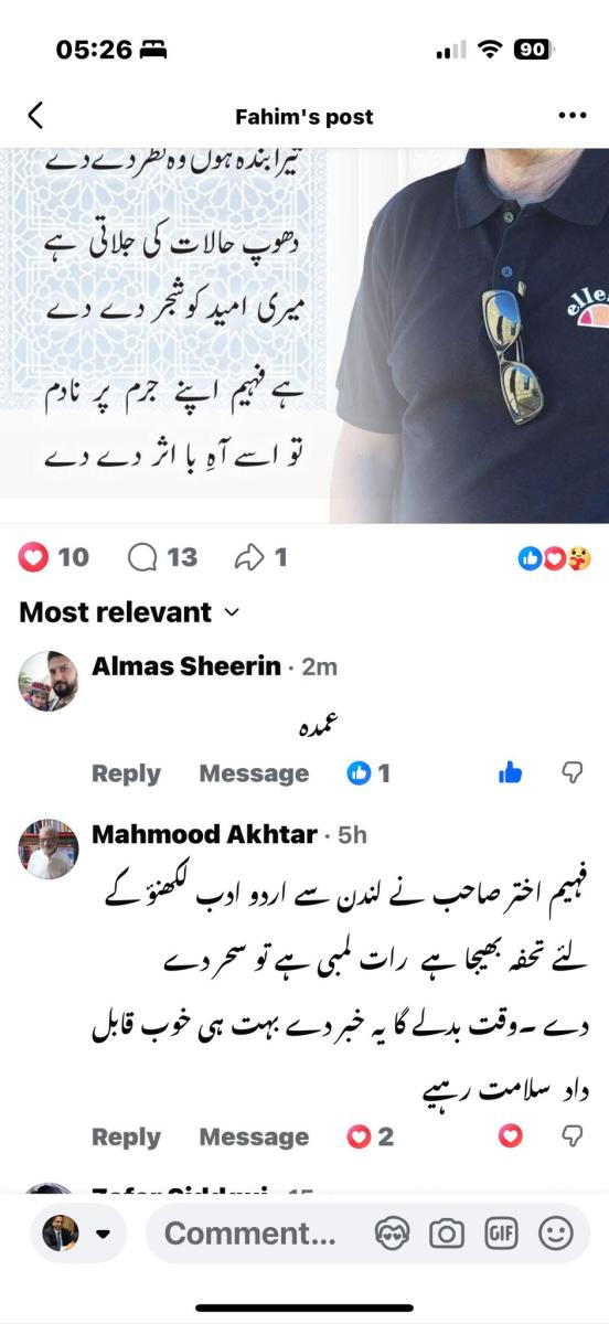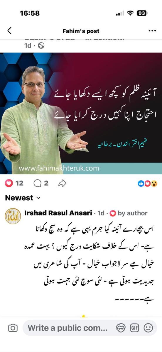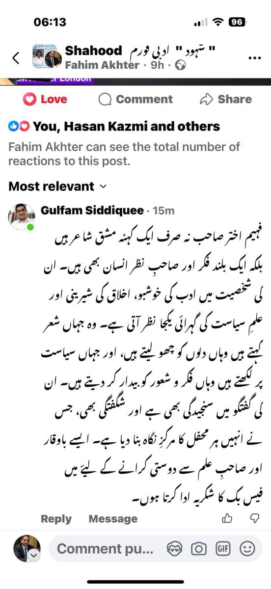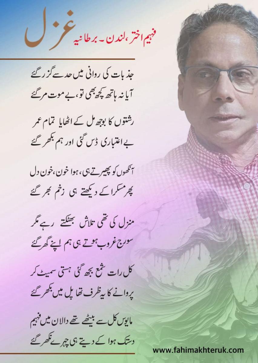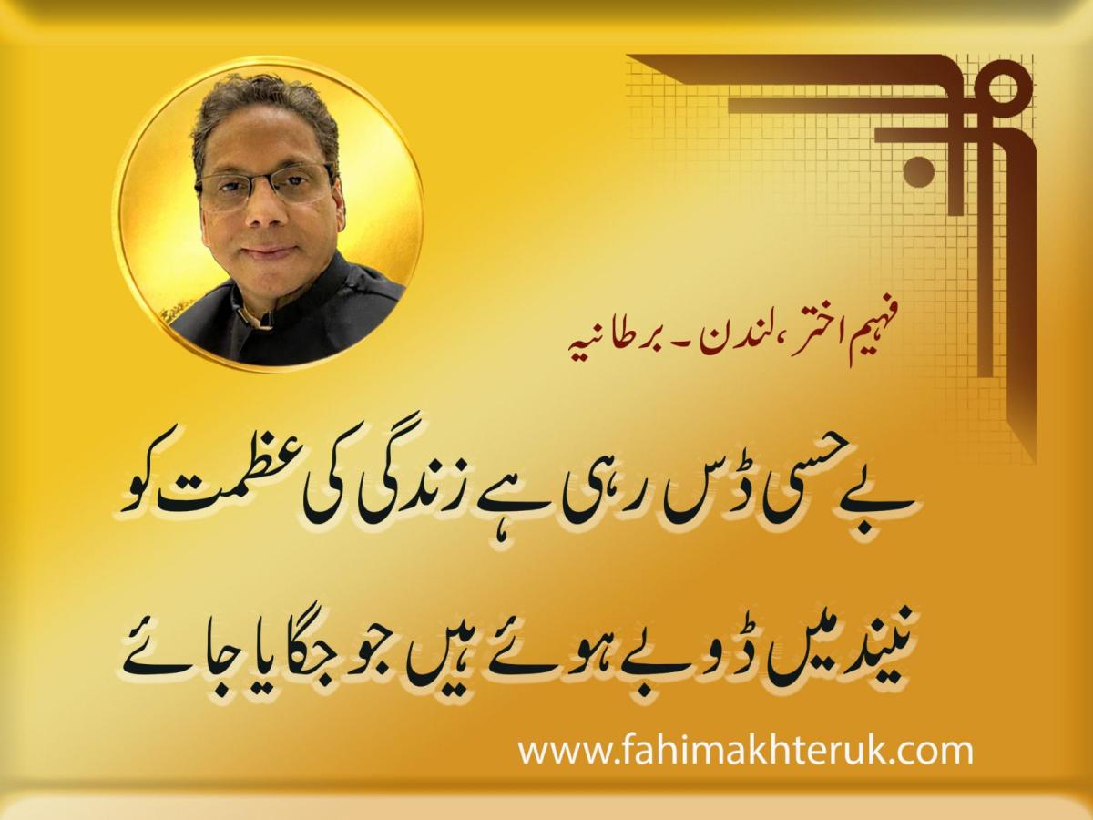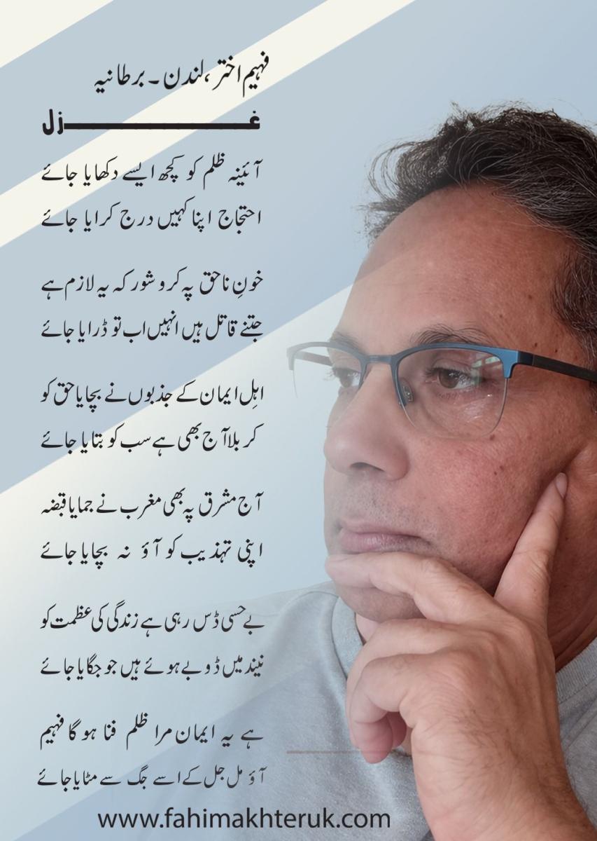 Fahim Akhter is a poet, short story writer and a columnist in Urdu. By Profession he is a registered Social Worker in England. He was born in 1966 in Calcutta. He has 9 brothers and sisters. He married to Huma Syed an IT professional and he has a daughter Zara Fahim. His father Sufi Jamil Akhter was a Sufi follower. He was graduated from Maulana Azad College Calcutta in 1988 and completed M.A in 1991 from University of Calcutta. In 2005 London Borough of Merton sponsored Fahim Akhter to complete the Diploma in Social Work training to become a qualified Social Worker.