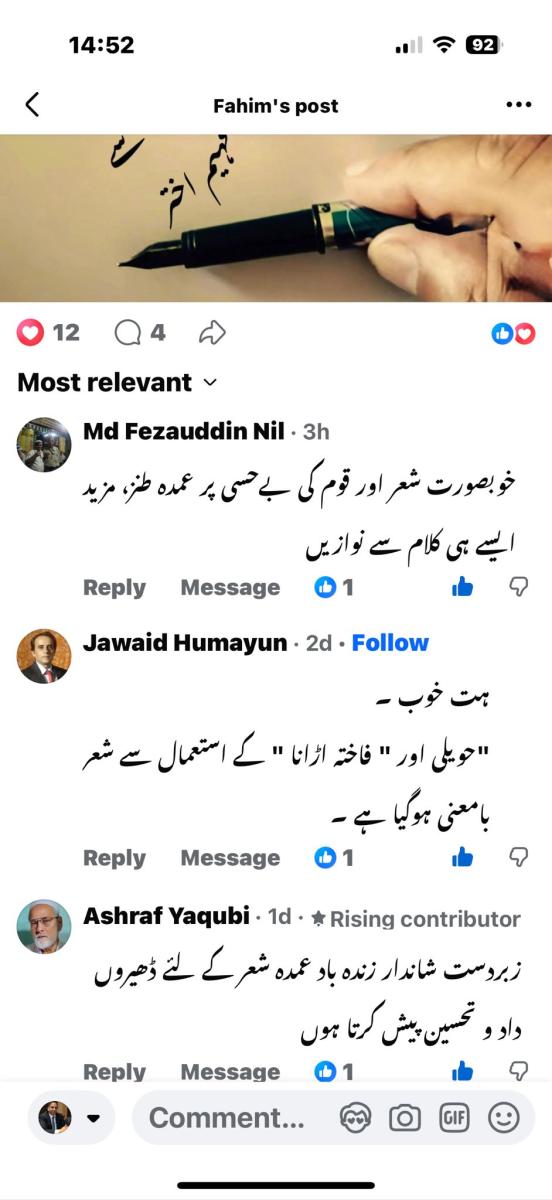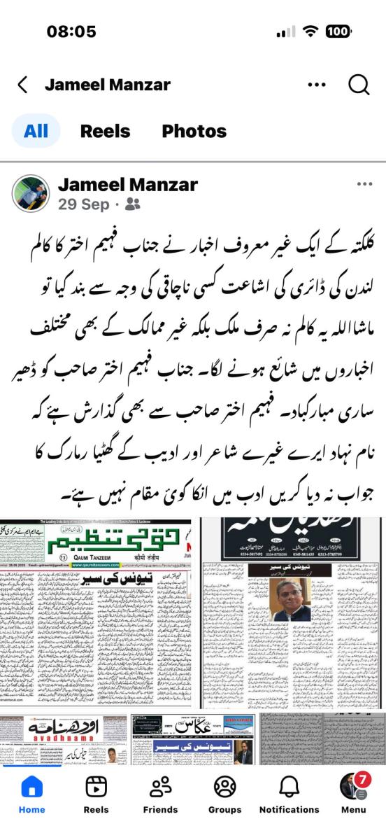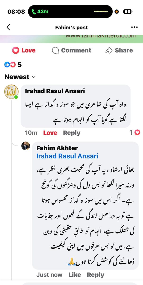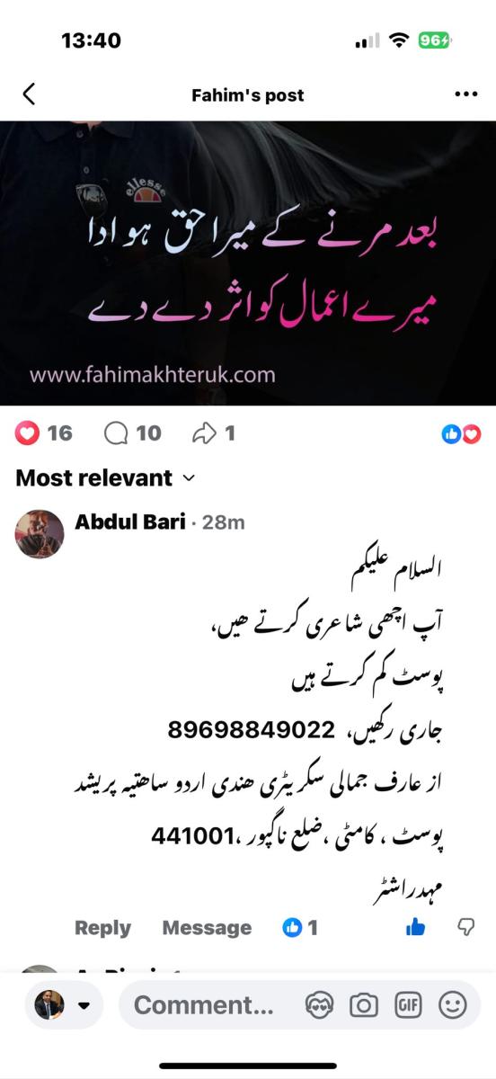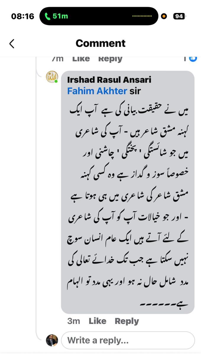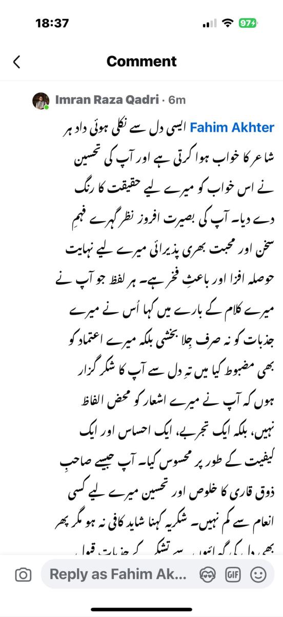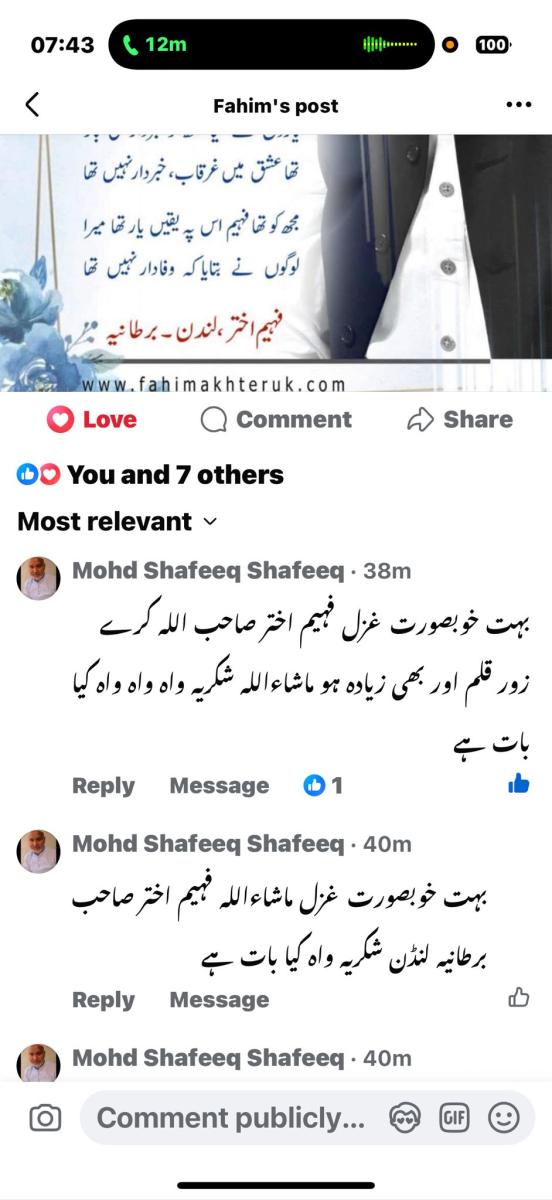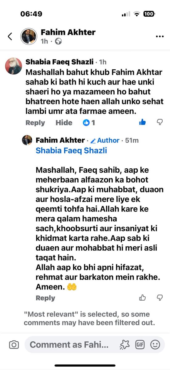 Fahim Akhter is a poet, short story writer and a columnist in Urdu. By Profession he is a registered Social Worker in England. He was born in 1966 in Calcutta. He has 9 brothers and sisters. He married to Huma Syed an IT professional and he has a daughter Zara Fahim. His father Sufi Jamil Akhter was a Sufi follower. He was graduated from Maulana Azad College Calcutta in 1988 and completed M.A in 1991 from University of Calcutta. In 2005 London Borough of Merton sponsored Fahim Akhter to complete the Diploma in Social Work training to become a qualified Social Worker.