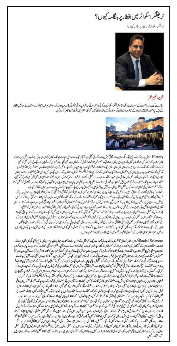 ہنگامہ ہے کیوں برپا؟ لندن کے معروف تاریخی مقام ٹریفلگر اسکوائر پر نہ کوئی بدامنی ہوئی، نہ شراب نوشی کا کوئی ہنگامہ برپا ہوا۔بلکہ معاملہ صرف اتنا تھا کہ رمضان کے موقع پر افطار کے ایک پُرامن اجتماع میں  لندن کے میئر صادق خان کی موجودگی میں نماز...