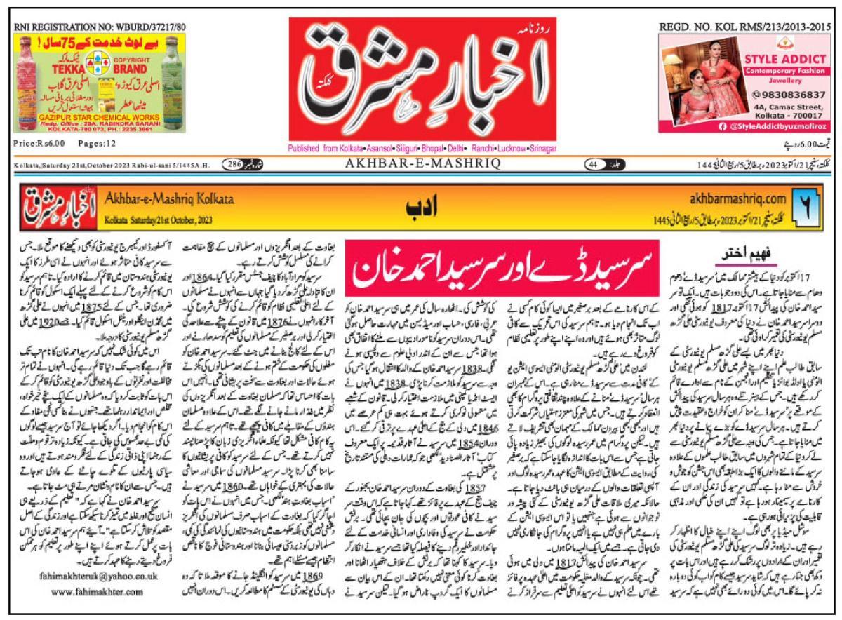 Fahim Akhter is a short story writer and a columnist in Urdu. By Profession he is a registered Social Worker in UK and he works for Royal Hospital for Neuro-disability London.He was elected General Secretary of Maulana Azad College Calcutta in 1987.He was graduated from Maulana Azad College Calcutta in 1988 and completed M.A in 1991 from University of Calcutta. In 2005 London Borough of Merton sponsored Fahim Akhter to complete the Diploma in Social Work training to become a qualified Social Worker.
