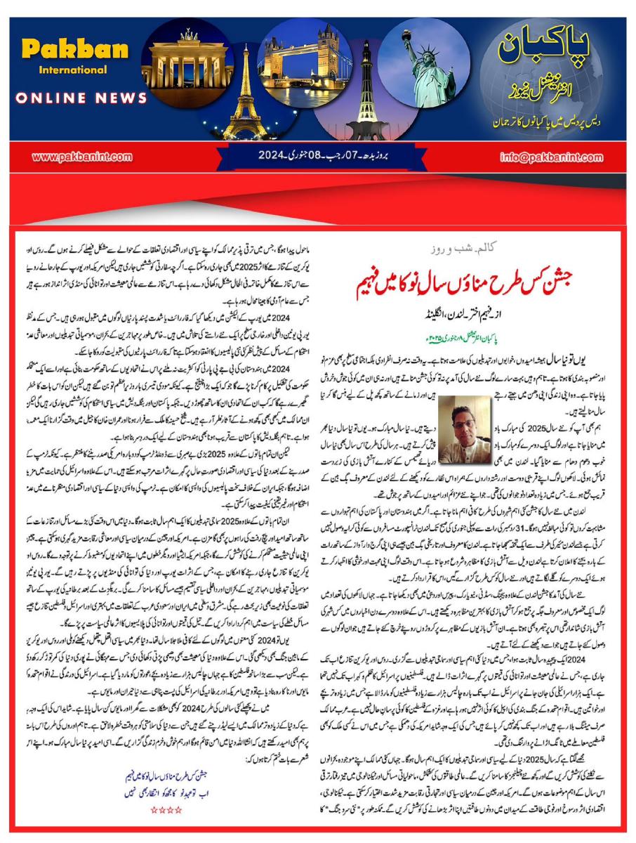 یوں تو نیا سال ہمیشہ امیدوں، خوابوں اور تبدیلی کی علامت سمجھا جاتا ہے۔ یہ وہ وقت ہوتا ہے جب فرد بھی اور معاشرہ بھی خود سے نئے عہد کرتا ہے، نئے منصوبے بناتا ہے اور بہتر مستقبل کے خواب دیکھتا ہے۔ مگر سچ یہ بھی ہے کہ...
