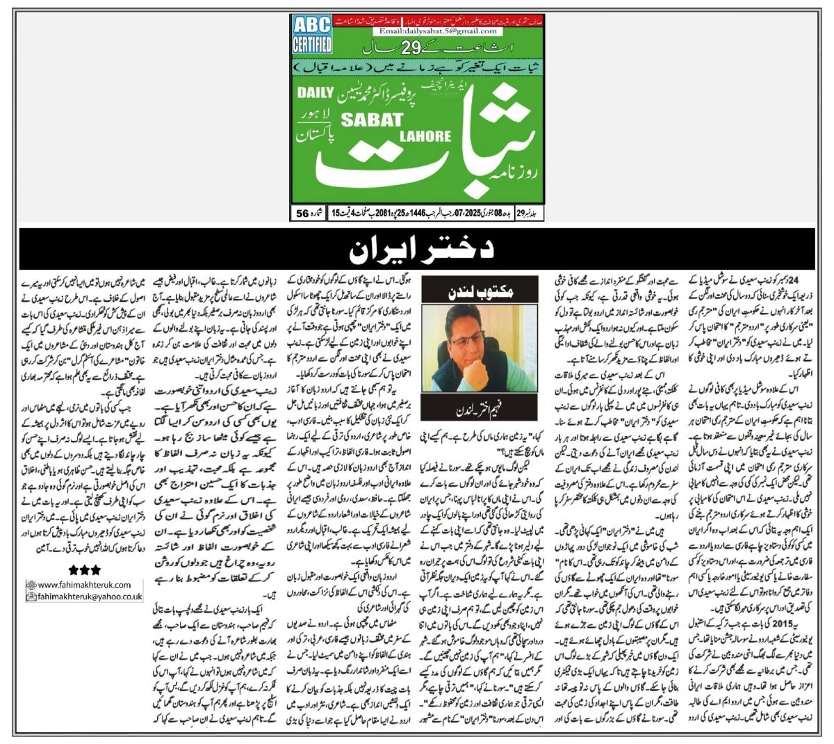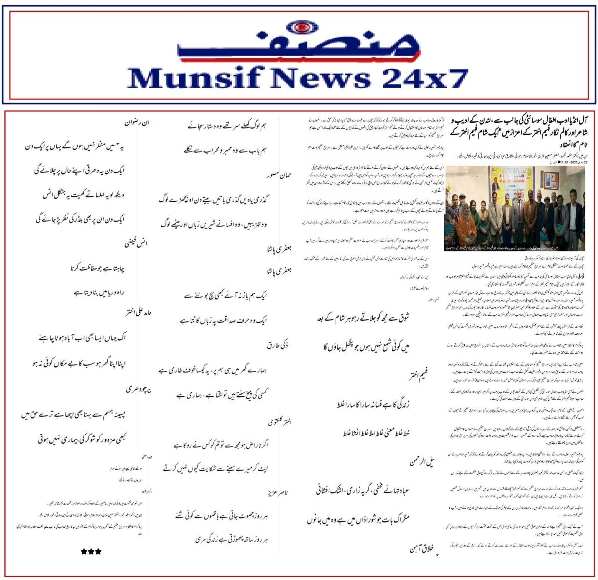 Fahim Akhter is a poet, short story writer and a columnist in Urdu. By Profession he is a registered Social Worker in England. He was born in 1966 in Calcutta. He has 9 brothers and sisters. He married to Huma Syed an IT professional and he has a daughter Zara Fahim. His father Sufi Jamil Akhter was a Sufi follower. He was graduated from Maulana Azad College Calcutta in 1988 and completed M.A in 1991 from University of Calcutta. In 2005 London Borough of Merton sponsored Fahim Akhter to complete the Diploma in Social Work training to become a qualified Social Worker.