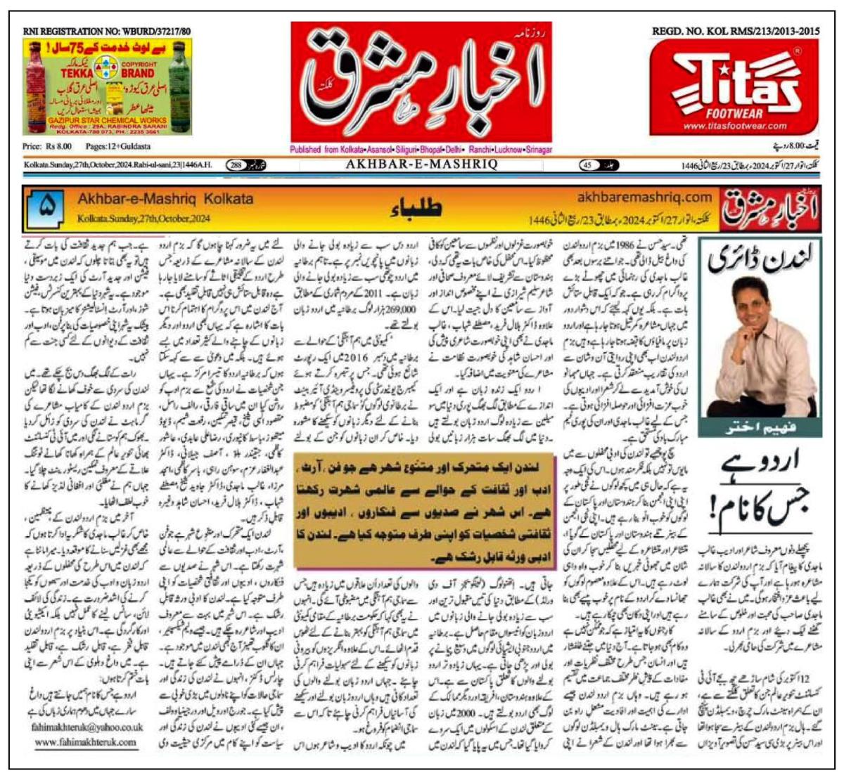Fahim Akhter is a poet, short story writer and a columnist in Urdu. By Profession he is a registered Social Worker in England. He was born in 1966 in Calcutta. He has 9 brothers and sisters. He married to Huma Syed an IT professional and he has a daughter Zara Fahim. His father Sufi Jamil Akhter was a Sufi follower. He was graduated from Maulana Azad College Calcutta in 1988 and completed M.A in 1991 from University of Calcutta. In 2005 London Borough of Merton sponsored Fahim Akhter to complete the Diploma in Social Work training to become a qualified Social Worker.
